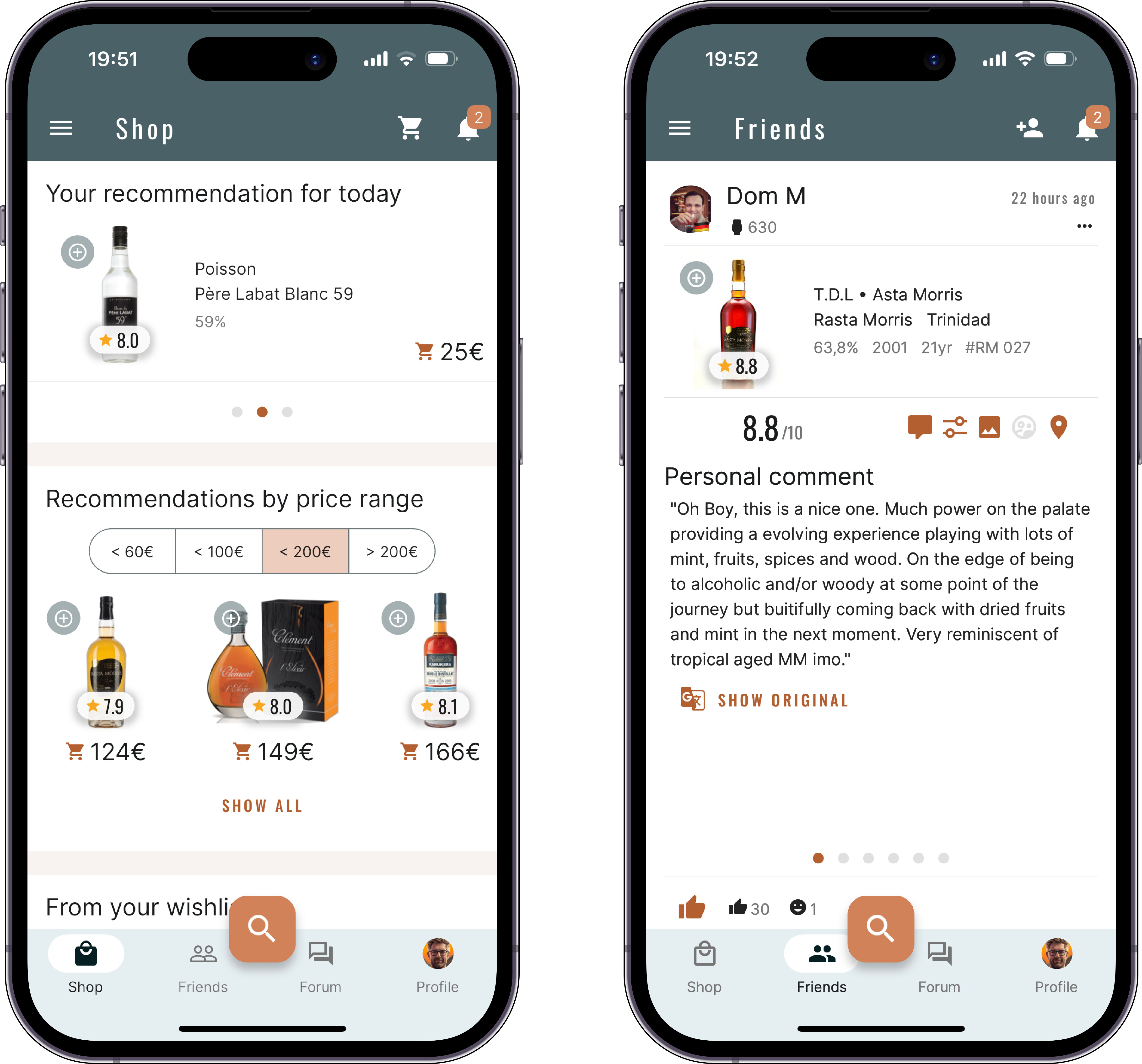 Shop: Here, you will discover personalized offers from our store partners, curated using machine learning based on your tasting notes and wish list entries. The daily fresh recommendations, selections by price range, available offers from your wish list, or rums with the best price-pleasure ratio are at your fingertips. Clicking on an offer will now take you to the new in-app shopping checkout, allowing you to manage all your purchases conveniently within the app. Moreover, every purchase supports the further development of your favorite rum app. We encourage you to explore and try out the enhanced shopping function.