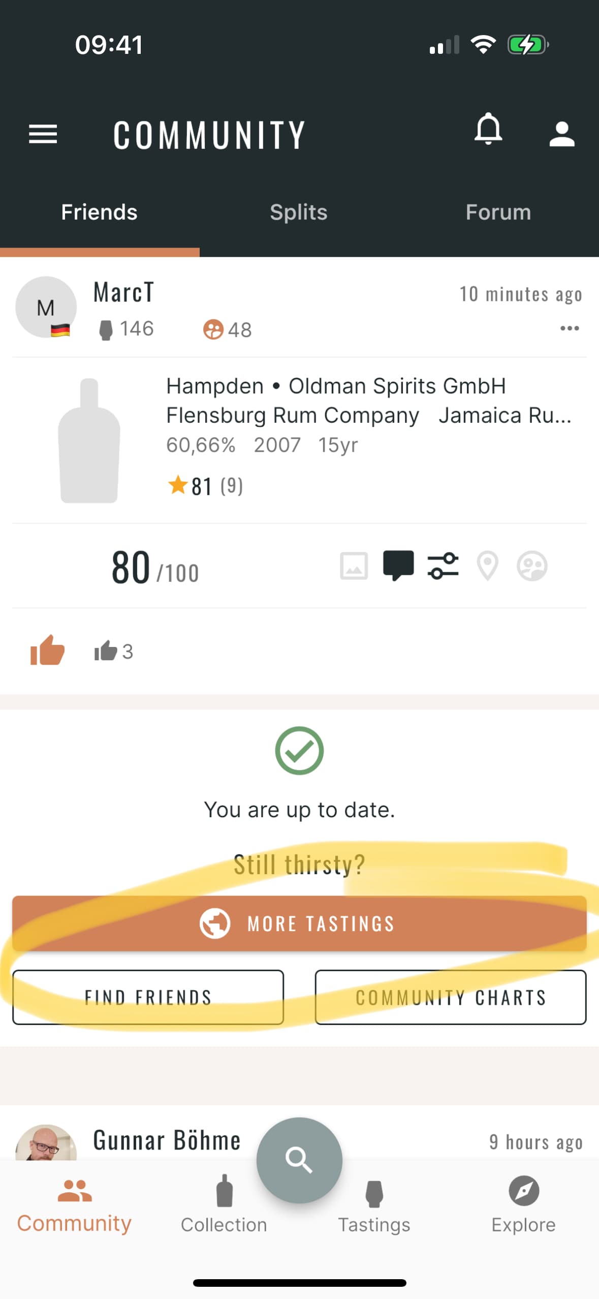 However, the global feed is not far away at all. Either you click on “More tastings” as soon as you have seen all new friends tastings (“You are up to date” hint) or you open the menu and click on “Latest tastings”: