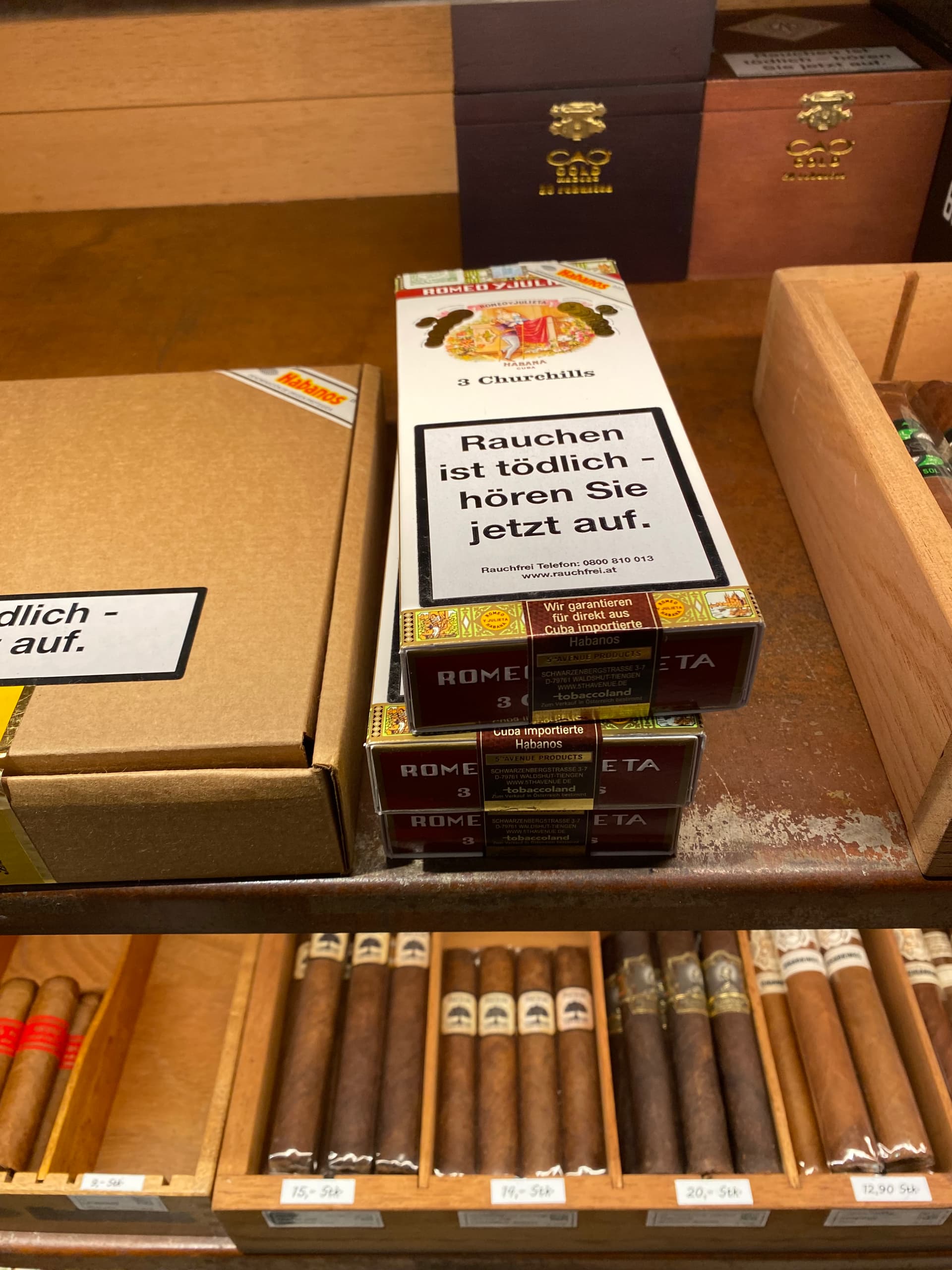 Ein Händler in Wien hatte heute morgen noch eine 3er Schachtel Romeo Y Julieta Churchill um 114€. Ich weiß nicht, ob Tubos oder nicht. Das Foto ist schon ein paar Tage alt.