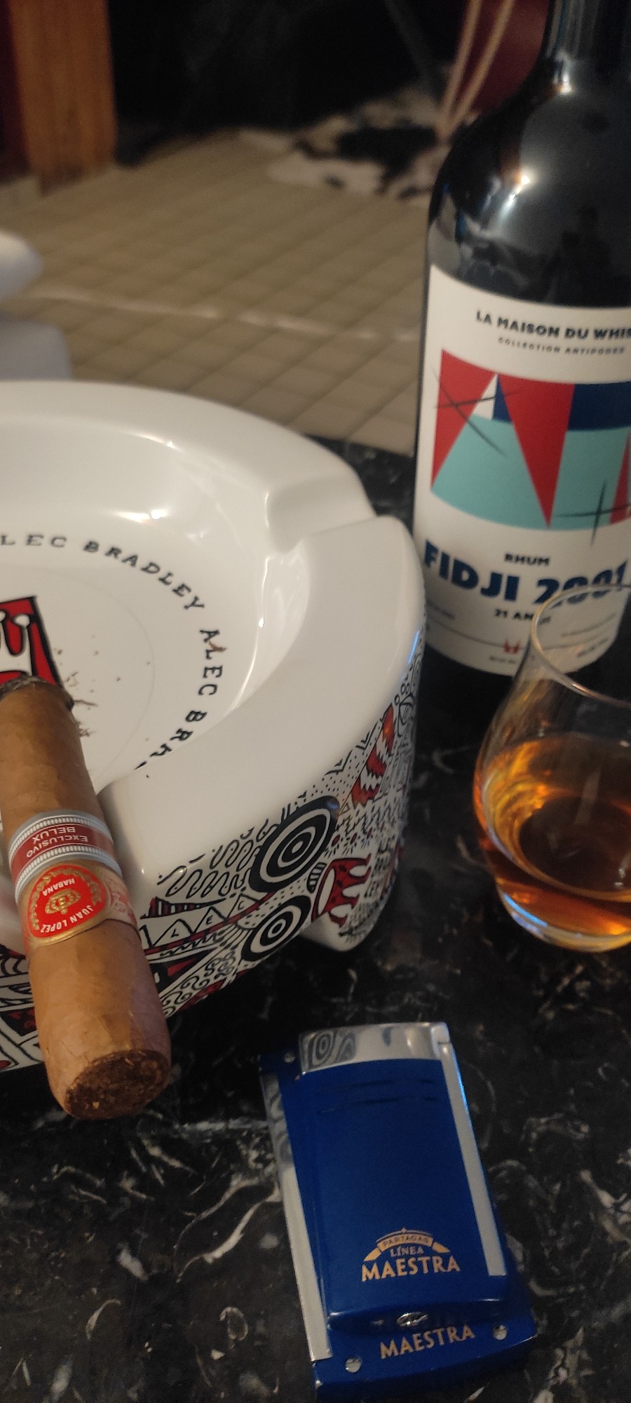 Sehr passend. Die cigare für Kubanerverhältnisse etwas Schokolade, cremig, Leder mit den dunklen Früchte des JM ![]()
