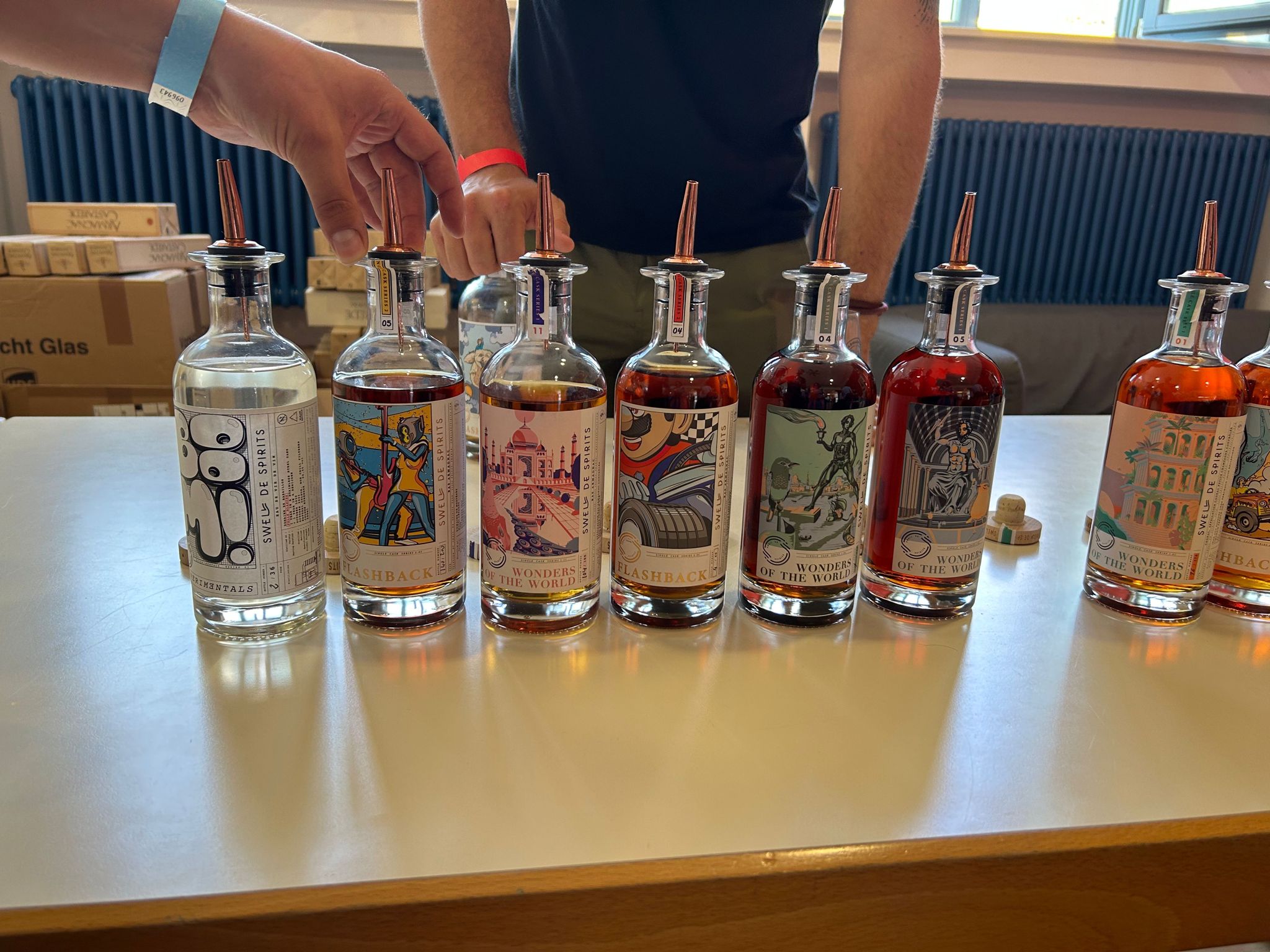 Von dort aus ging es für uns zu Swell de Spirits und dem ersten wirklichen Highlight des Events. Bis hierhin sollten wir noch ab und zu für unsere Gläser bezahlen, was Ich vollkommen nachvollziehen kann. Die Spirituosen, die wir tranken, waren extrem hochwertig und lange gelagert. Natürlich hat das auch seine Preise. Und über 2-5€ pro Glas kann sich in den heutigen Zeiten wirklich niemand beklagen. Aber bei Swell de Spirits merkte man sofort, daß Michael Barbaria eine andere Schiene fuhr. Er war nur da um seine tolle Marke vorzustellen und seine Produkte einem “Fachpublikum” zu zeigen. Er hatte weder Flaschen zum Verkauf dabei, noch wollte er für die ausgeschenkten Gläser etwas haben. Er hatte 6 Armagnacs, 7 Cognacs und den 1996er Barbados WIRD Rum dabei. Wir begannen mit den Armagnacs und er zeigte uns einen tollen 1976er Domaine de Jouatmaou (ja heißt wirklich so