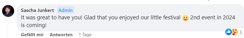 Bis hierhin hat vermutlich eh keiner gelesen, also bleibt mir nur nochmals Danke zu sagen, wir kommen auf jeden Fall wieder bei einem eventuellen 2. GAF nächstes Jahr.