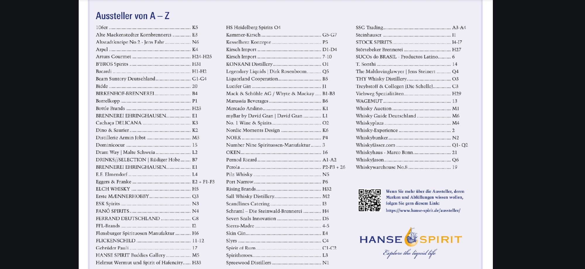 Sind mit Bellamy’s, razels, cihuatan und einigen Bourbon Whiskey Marken, sowie big kahuna Gin am Start ! ![]()