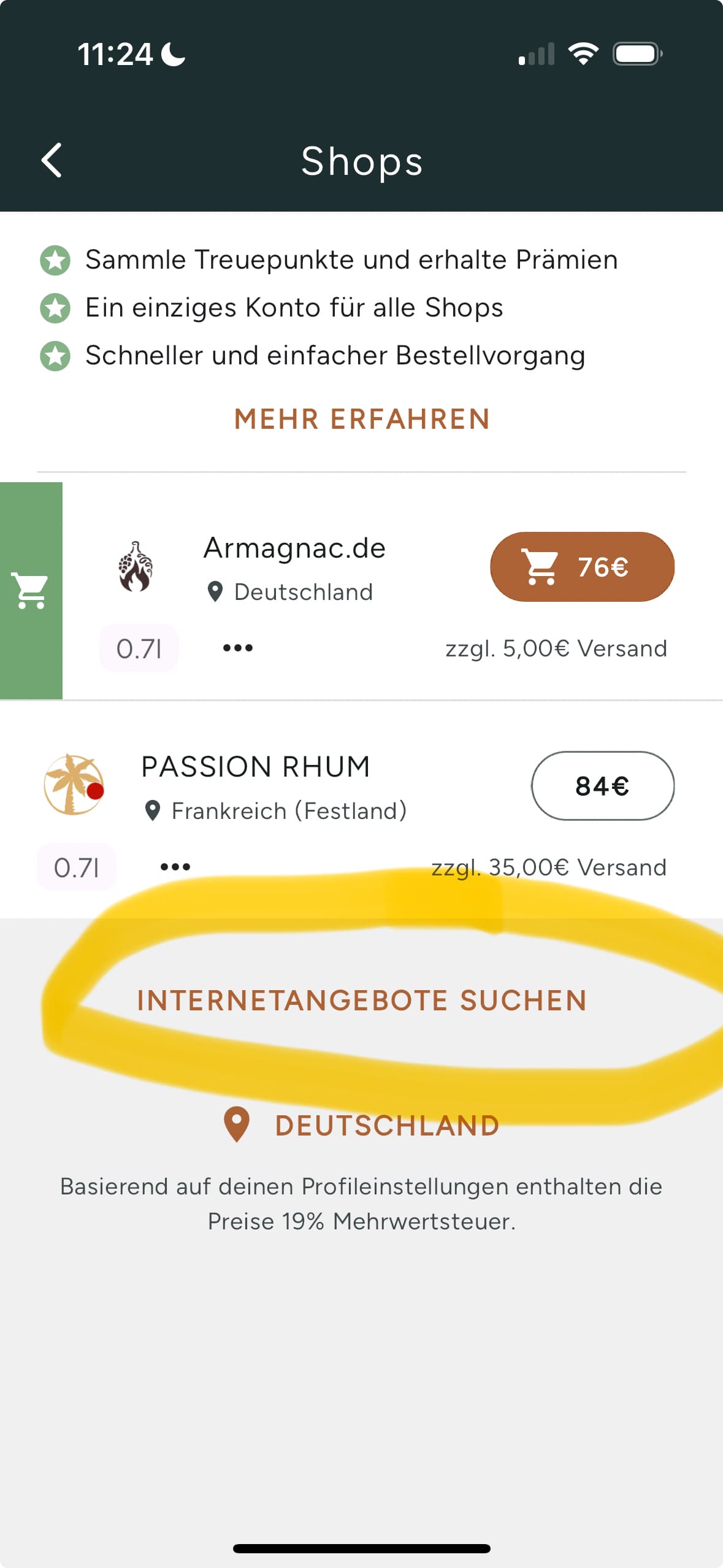 Do you mean the behaviour when buying via the new RumX marketplace or when you are redirected out of the app via the old mechanism with “Search internet offers”?