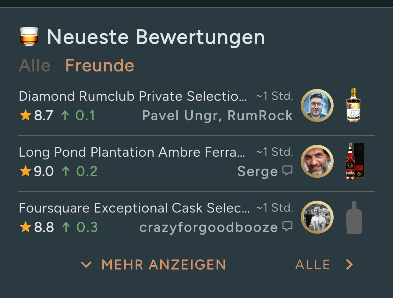 Welche Informationen/Funktionen sind im Redesign schlechter erreichbar? Durch die prominente Suchfunktion ist die Datenbank ja immer noch zentrales Element und immer im Zugriff. Was versteht Du unter “Bewertungen” - den Freunde-Feed? Der Kerngedanke zur neuen “Community”-Startseite war exakt der, den Kern von RumX - die Bewertungen der Community - stärker in den Vordergrund zu setzen und basierend auf dem Feedback der großen RumX-Umfrage besser aufzubereiten (Welche Rums sind gerade besonders beliebt? Was sind Highlights der Community / von Freunden, …). Quasi die lebendige Community greifbar zu machen. ![]()