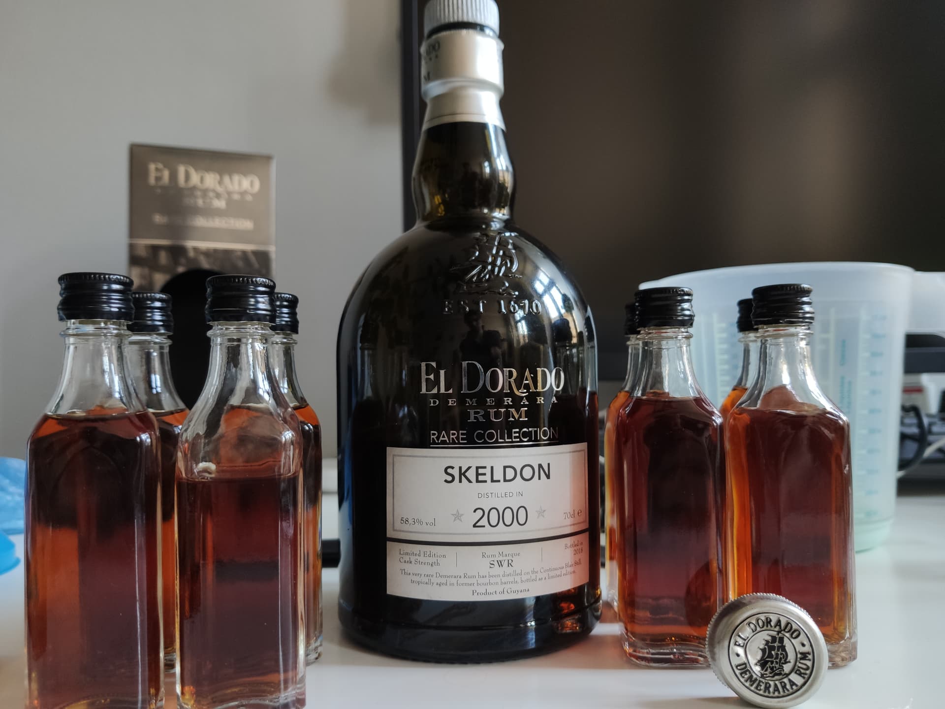 Ich bezweifel mal stark, dass irgendjemand von uns Calcium (und/oder Magnesium) im Mikrogrammbereich, welches eventuell durch Wasserrückstände in den Flaschen verbleibt, herausschmecken würde. Auch nicht bei 40% ABV.