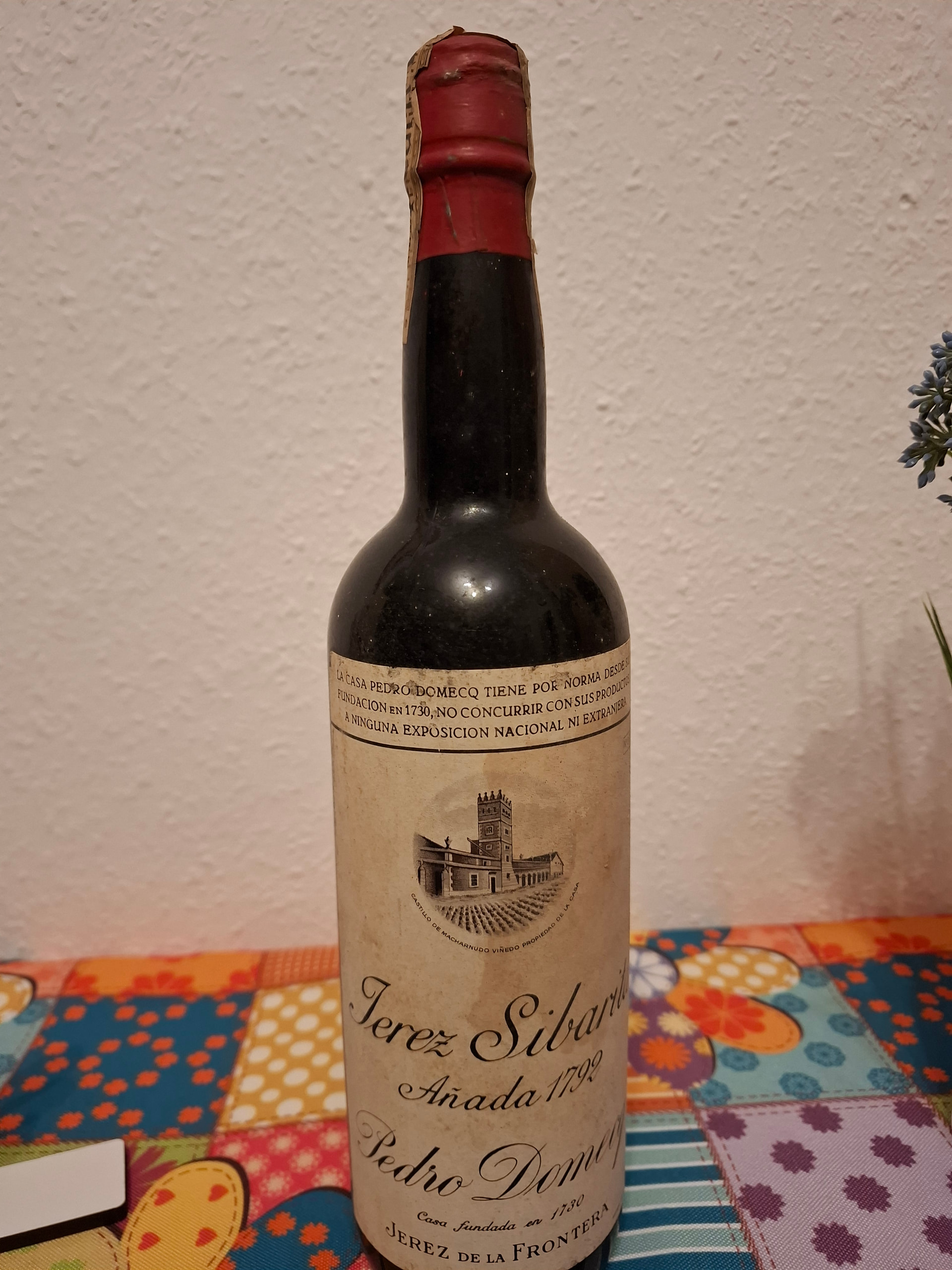 ich habe letztens einen Kellerfund zugespielt bekommen. Es handelt sich um einen Sherry aus den 1960er Jahren. Die Bezeichnung “Jahrgang 1792” ist sherry-typisch auf das Solera-Verfahren bezogen. In dieser Brennerei wurde 1792 mit diesem Solera-Fass begonnen. Jahr für Jahr mit den “besten” Weinfässern aufgefüllt. D.h. da wird nichts mehr von 1792 drin sein. Im Schnitt ist der Inhalt 30-60 Jahre alt und extrem hochwertig für Sherry-Verhältnisse. Ob sich die Flasche gut gehalten hat ist eine andere Frage, daher machen wir sie doch einfach auf und testen Sie ![]()