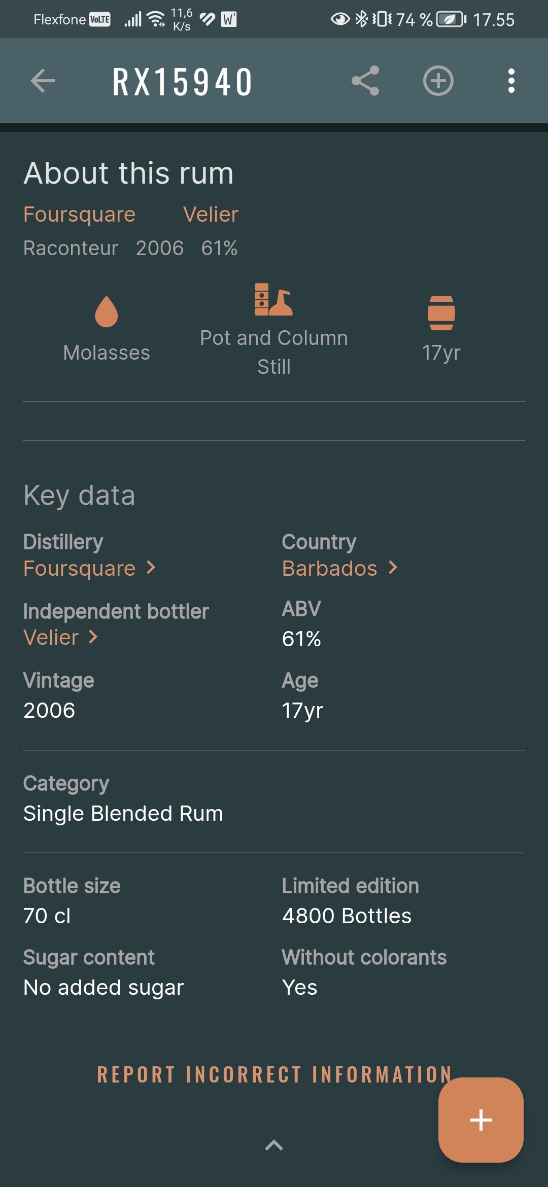 No change after update. What I‘m missing ist for example the information that this rum was aged 5 years in bourbon cask and 12 years in sherry cask. It is in the data base but I cannot see it in the app.